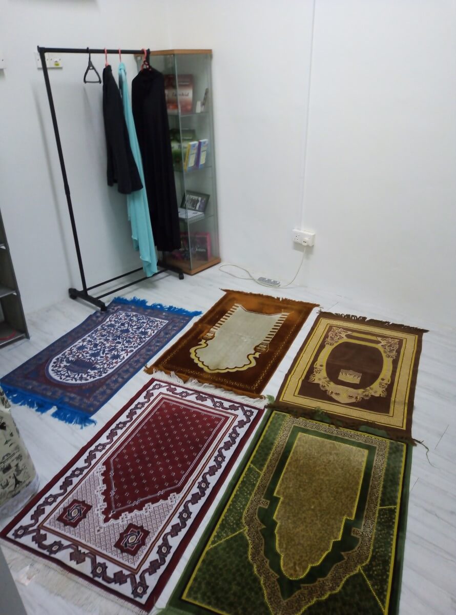 We provide prayer room for our Muslim friends. It’s comfortable, spacious, air-conditioned and clean! We’ll make sure that everything is washed regularly to avoid discomfort.